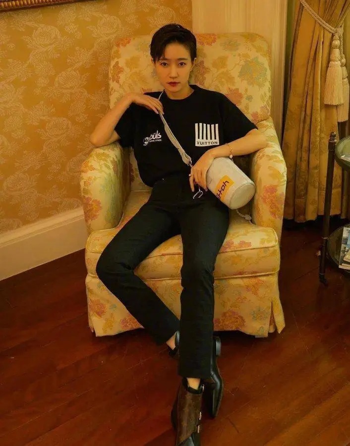 焦俊艳早期出目前公众视线时,确乎往往是一副“假小子”容貌。 灰色鸭舌帽下略显凌乱的咖色短发,工装外衣搭配修身牛仔裤,再踩上一对短靴,洒脱随心。 她以致因为穿搭作风被爸妈吐槽过,却在年青东说念主眼中细致又洋气。