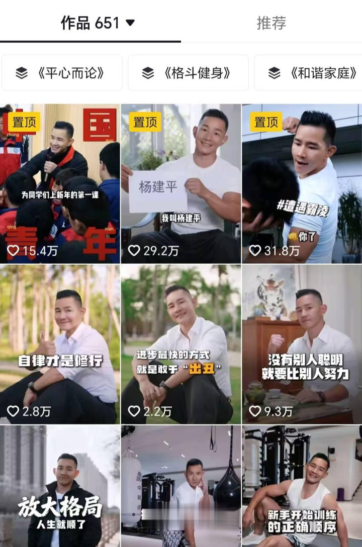 在行家的传统泄漏里,格斗通顺员通常被贴上“骁勇好斗”“只会打”的标签,硬朗、强势的赛场形象长远东说念主心,却很少有东说念主看到他们赛场以外的珍贵与担当。而格斗宇宙冠军、有着“中华虎”好意思誉的杨建平,却凭借多元化的短视频创作,澈底干豫了这一固化印象。他以包容多元的履行布局,从躯壳历练到心灵柔润,全宗旨传递正向价值,不仅收货了海量粉丝,更让格斗精神有了更暖和、更全面的证实,成为中国搏击界正能量传播的标杆东说念主物。