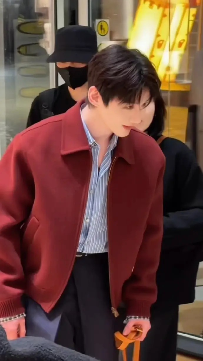 他秘要隘将这件夹克与浅蓝色条纹衬衫搭配,领口规整地外露。 下身的深色阔腿西裤裤腿宽度恰到平允,既带风又未覆没皮鞋。 举座造型中的妙笔是阿谁工致的“火箭”造型硬箱包,其带有改日感的金属遮盖突破了酒红色的千里闷感,注入了一点开朗。