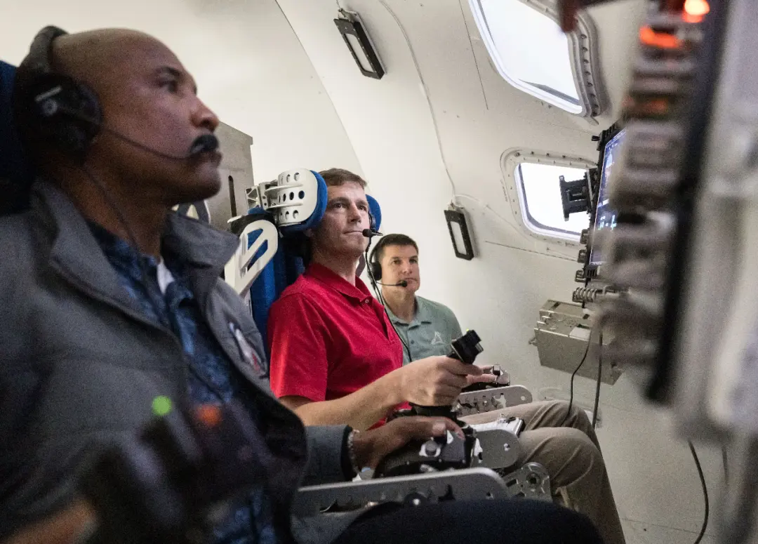 NASA宇航员维克多·格洛弗、里德·怀斯曼和加拿大航天局宇航员杰里米·汉森在阿尔忒弥斯II号模拟检修中